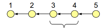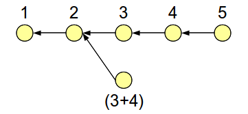 So far, we’ve seen how to modify an older commit. A more general problem is modifying an entire range of older commits. For example, how can we merge the changes from commit 3 and 4 into a single commit? This is shown below: