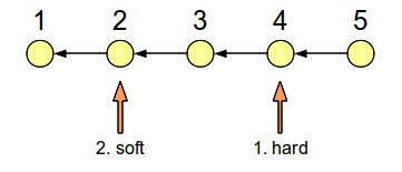 For this problem, we can use a more general version of the hard-soft trick explained above: First, we’ll do a hard reset on commit 4, then a soft reset on commit 2, as shown below: