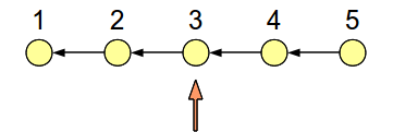 If you want to modify commits older than the last one, things get more complicated. It’s not all that difficult though once you understand the general strategy. Let’s take a look at an example: Suppose you have five commits, numbered 1 through 5, and the goal is to modify just the third commit, as shown below: