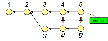 In Git, if you move a branch pointer elsewhere, you risk losing the commits the branch pointer was pointing at, since the commits might become unreachable. To prevent this, we’ll have to create an additional branch pointer, in this case named branch1, which points at commit 5.