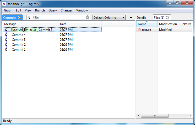 - The first thing to do is to create a new branch on the last commit (without switching to the branch) in order to make sure we won’t lose any commits while performing resets. To create the branch, in the Log window or the Standard window, select the last commit, then use the Graph context menu -> Add Branch. On the dialog, enter the branch name and confirm by clicking on the Add Branch button. This is what the Log might look like afterwards:
